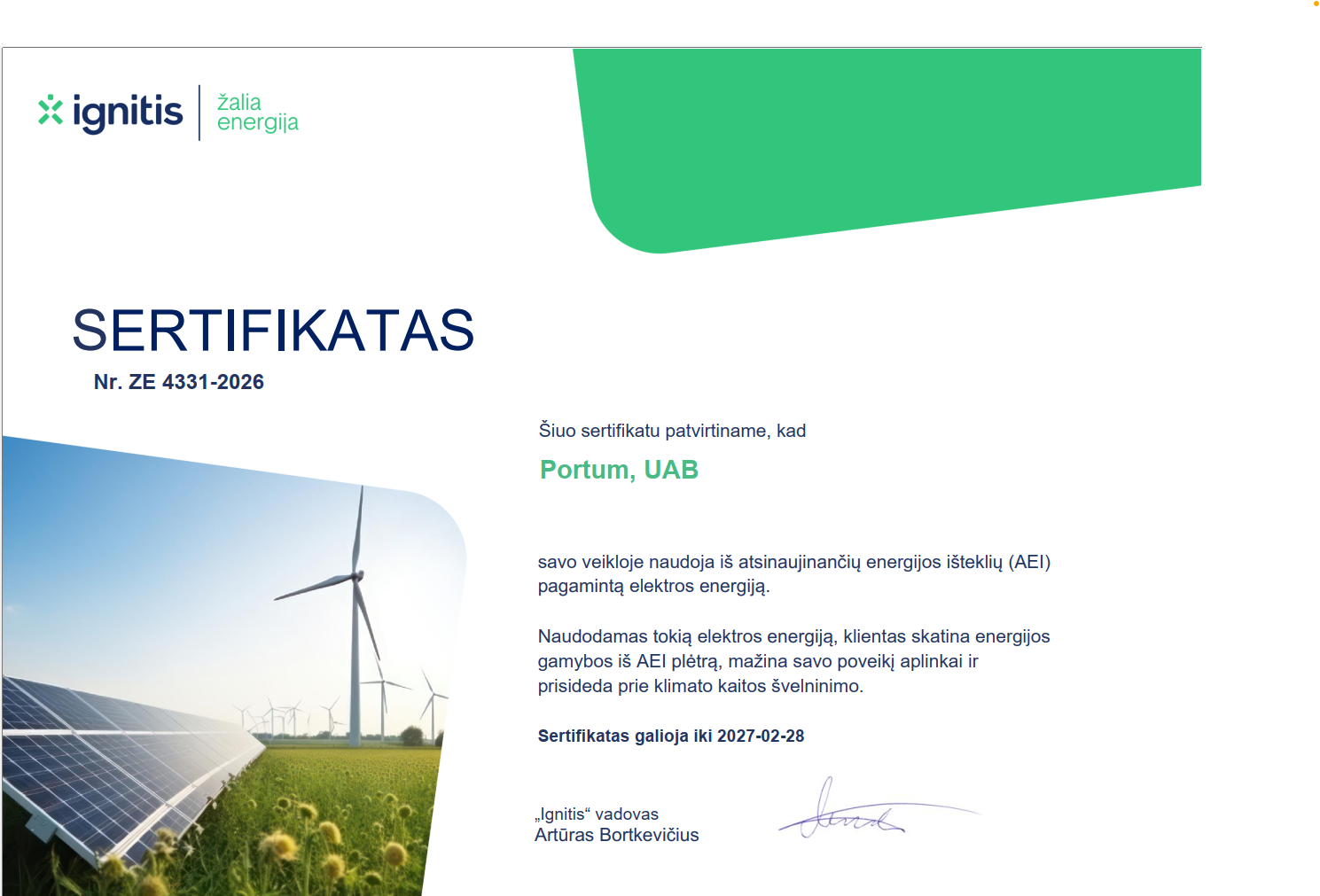 Teigiama, kad kaupiklis tai taip pat padės amortizuoti elektros kainų svyravimus biržoje – energija bus kaupiama mažesnių kainų laikotarpiais ir naudojama pikinių - didžiausių tarifų metu, taip ženkliai mažinant objektų elektros sąnaudas. Be to, kaupiklis sustiprins PORTUM administruojamų objektų energetinį lankstumą, leis sklandžiau valdyti vidinius energijos srautus ir užtikrins tvaresnį, labiau prognozuojamą veiklos modelį.